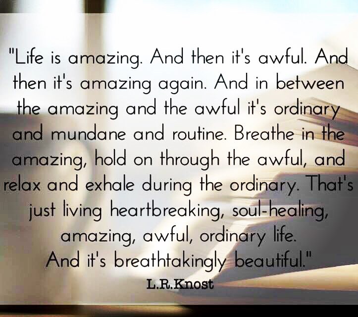 On most days, however, when I'm not looking for evidence that I and my life are a total waste; on days when I'm feeling grateful for the body I'm in, delighted by the mind I've been given, and overwhelmed by the grace I've been shown in my life, I can acknowledge how the abyss into which I fell gave me – finally – the opportunity to heal some long-held wounds that preceded my husband by years and obfuscated who I was.